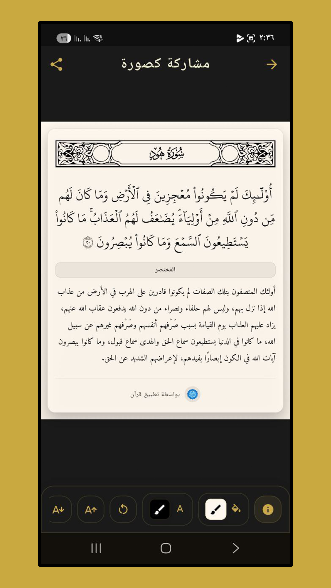 | ✔ | مشاركة الآيات كنص أو كصورة |