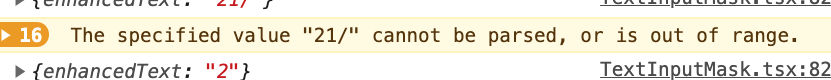 When I fill in 21 my mask function makes it 21/ because of the format but the textinput can't parse because it is not a numeric value anymore.