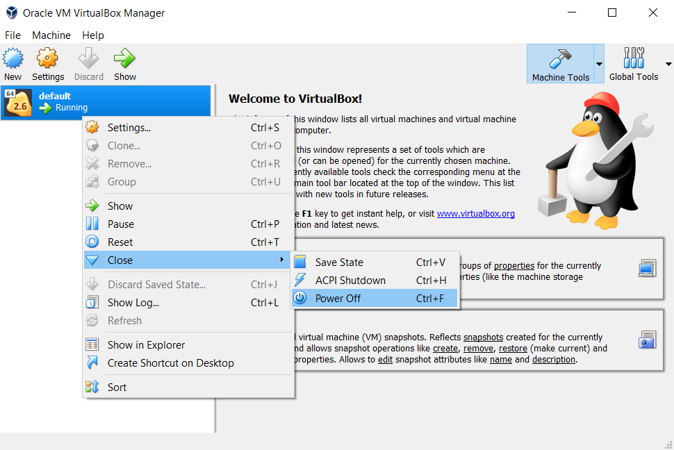 Shut down the running virtual machine,