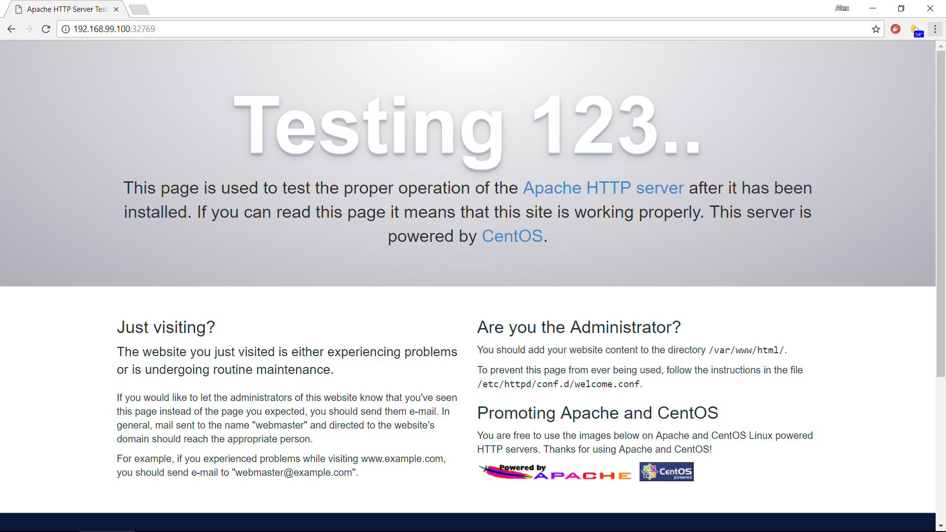 - The address and port next to Docker Port 80 is for web access. In the example shown this means