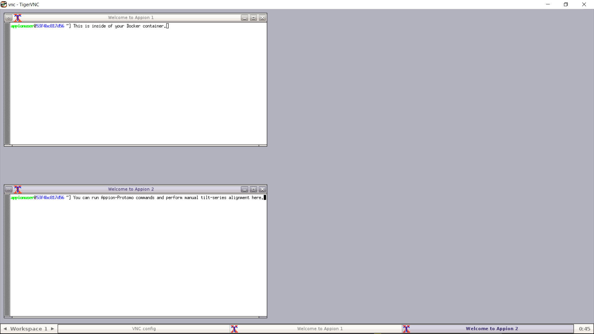 cd leginon-tutorial- To launch a running container of the leginon-tutorial image, do: