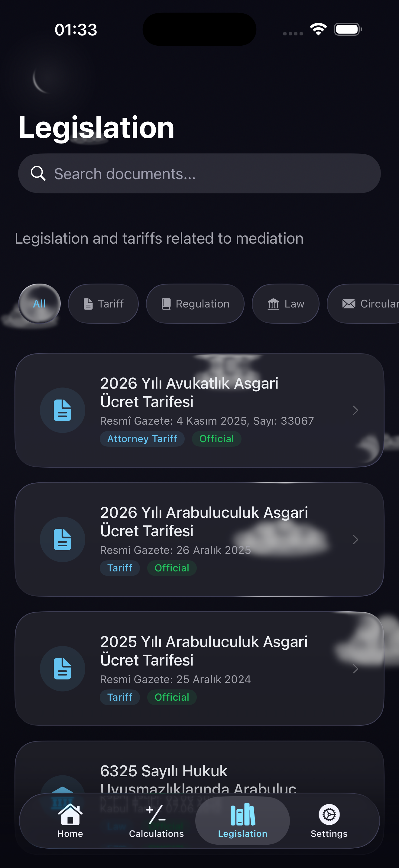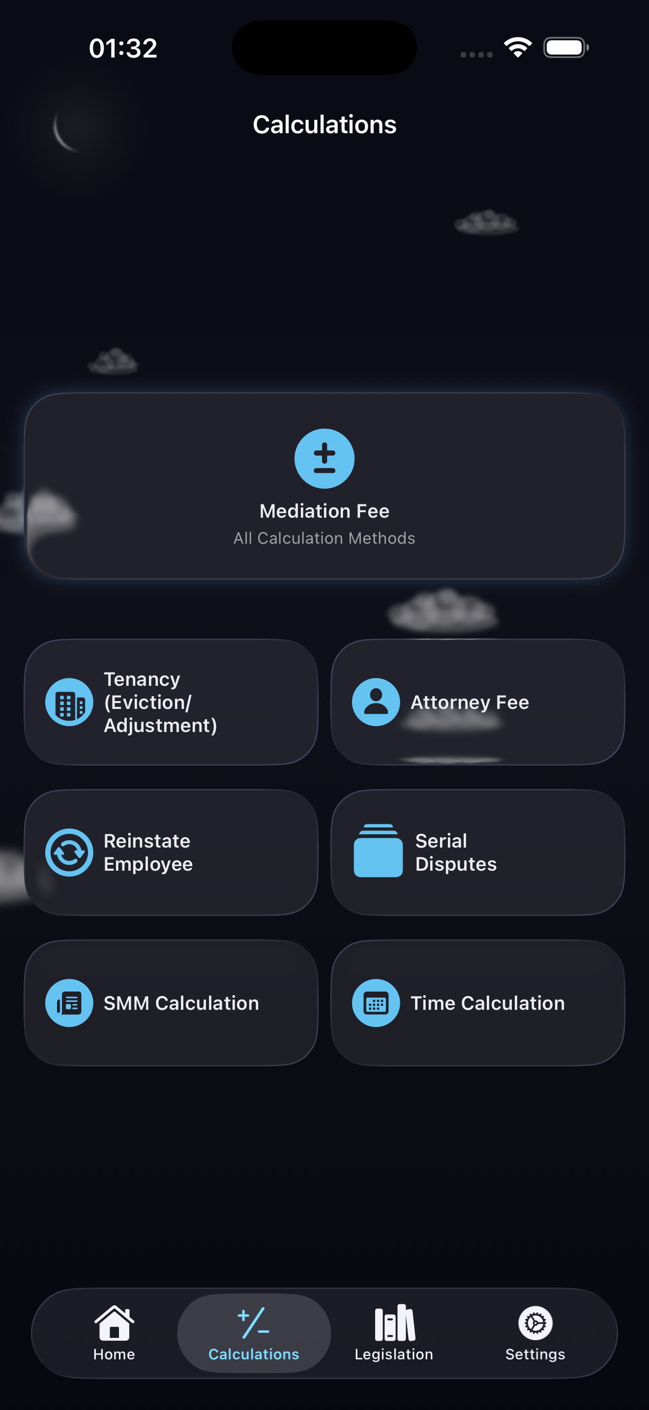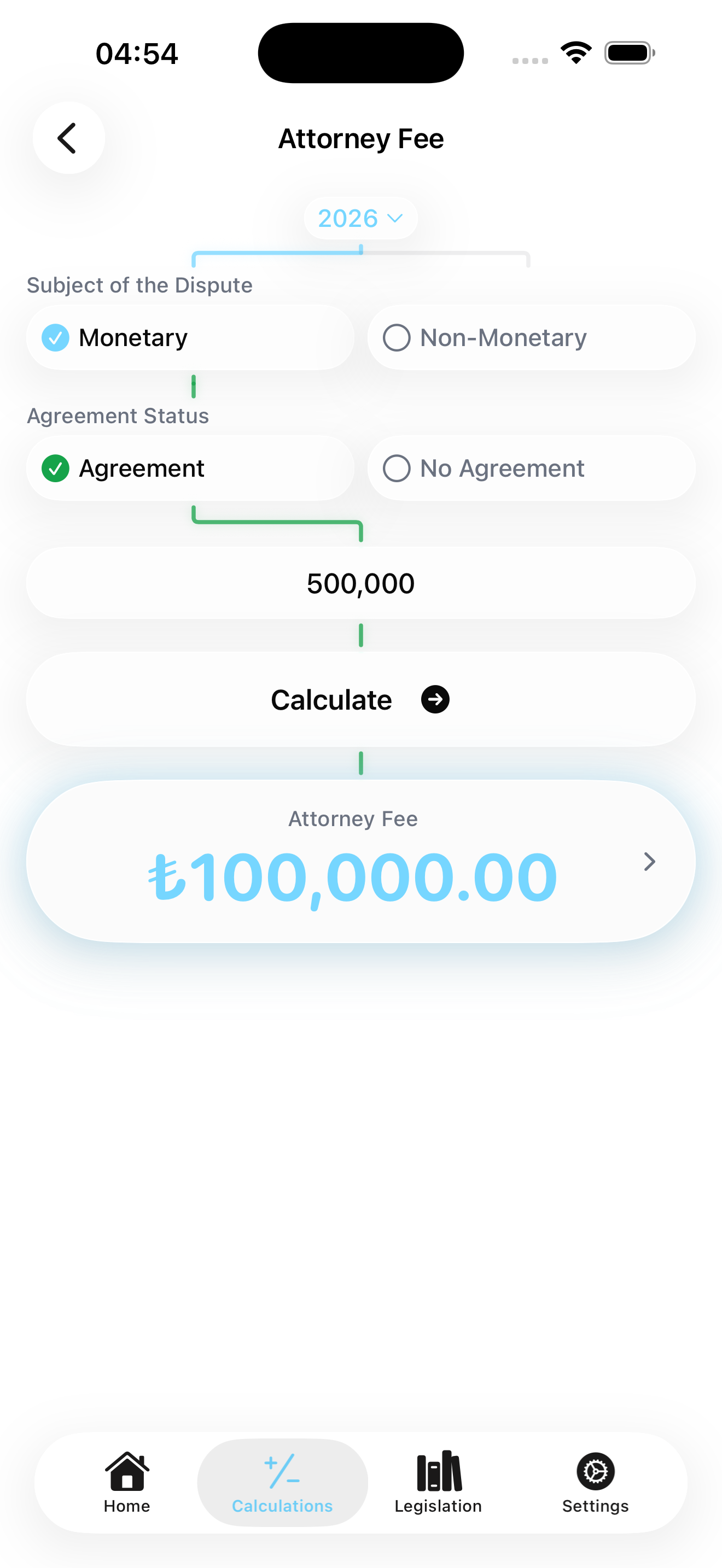 - Persistent Tab Bar: Quick access to home, calculations, legislation, and settings