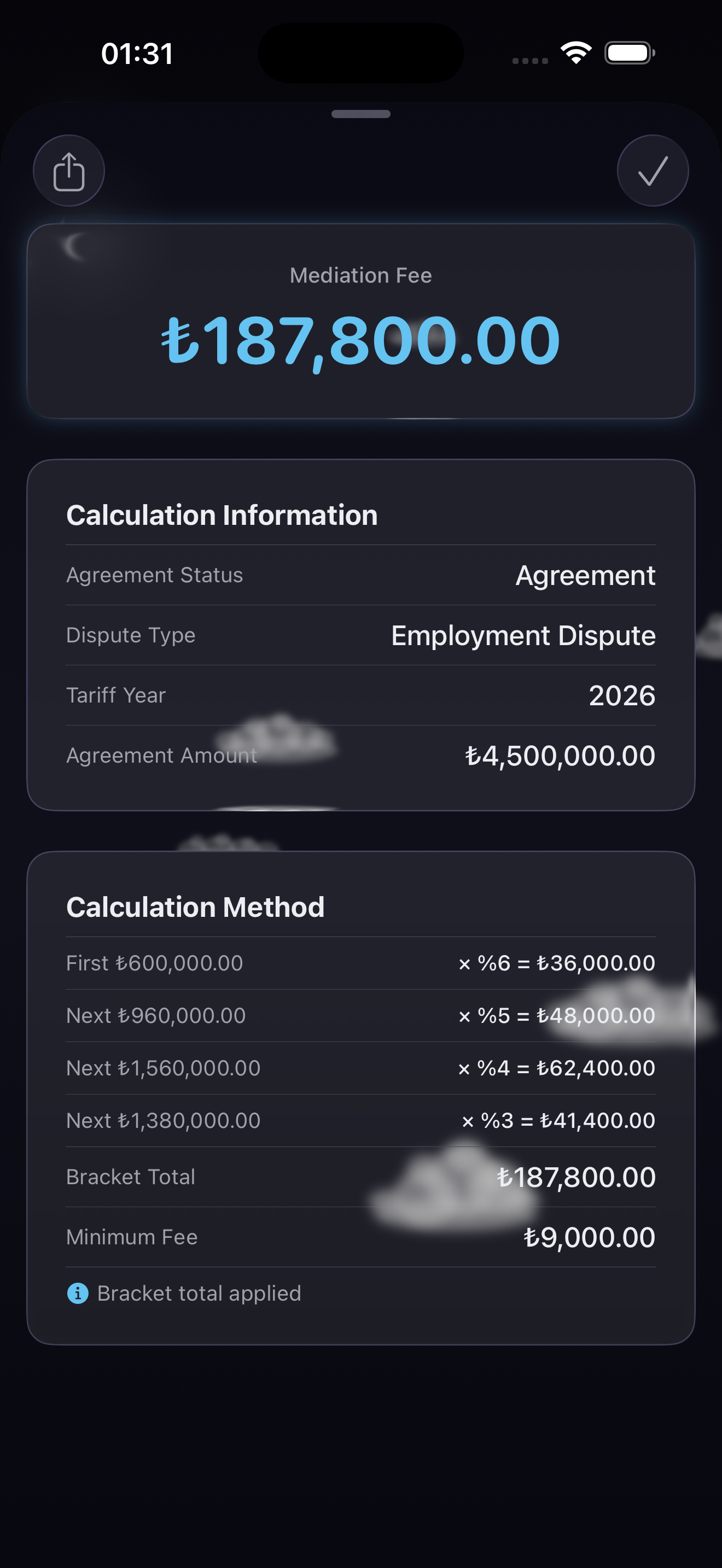 - 2025 & 2026 Official Tariffs: Based on current Turkish mediation fee tariff