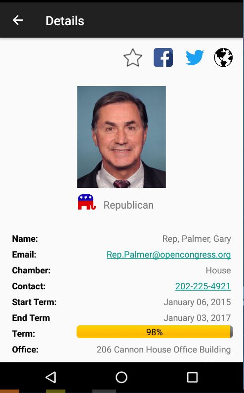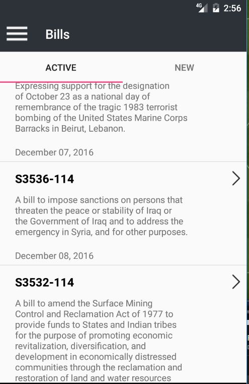 An android application that catalogues data of Bills, Legislators and Committees, using the Sunlight Congress API. This was a part of Web Technologies coursework at University of Southern California. It was also an opportuniy to learn integration of REST web services with Android as a front-end.