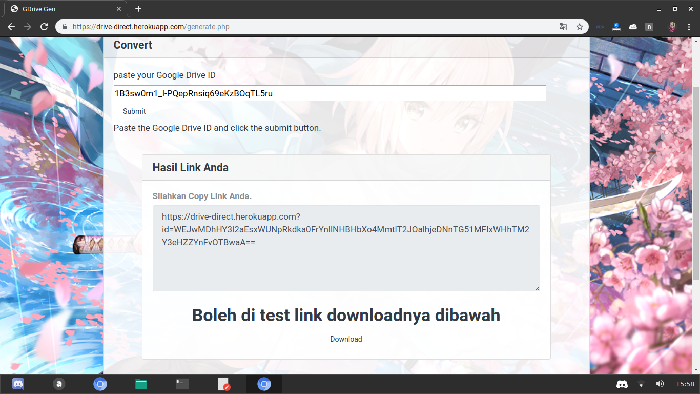 How to deploy hide directlink google drive to heroku ? clone this repo add your iv,key,api google drive in index.php and generate.php deploy open /generate.php for convert that link Screenshots generate Screenshots hide directlink thanks