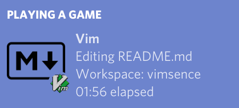 call dein#add('vimsence/vimsence')to your vimrc file. - Reload your vimrc or restart