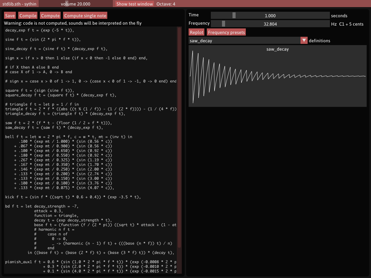 sythin is a programmable music synthesiser featuring pure functional DSL.