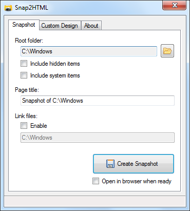 This application takes a "snapshot" of the folder structure on your harddrive and saves it as an HTML file. What's unique about Snap2HTML is that the HTML file uses modern techniques to make it feel like a "real" application, displaying a treeview with folders that you can navigate to view the files contained within. There is also a built in file search and ability to export data as plain text, csv or json. Still, everything is contained in a single HTML file that you can easily store or distribute.