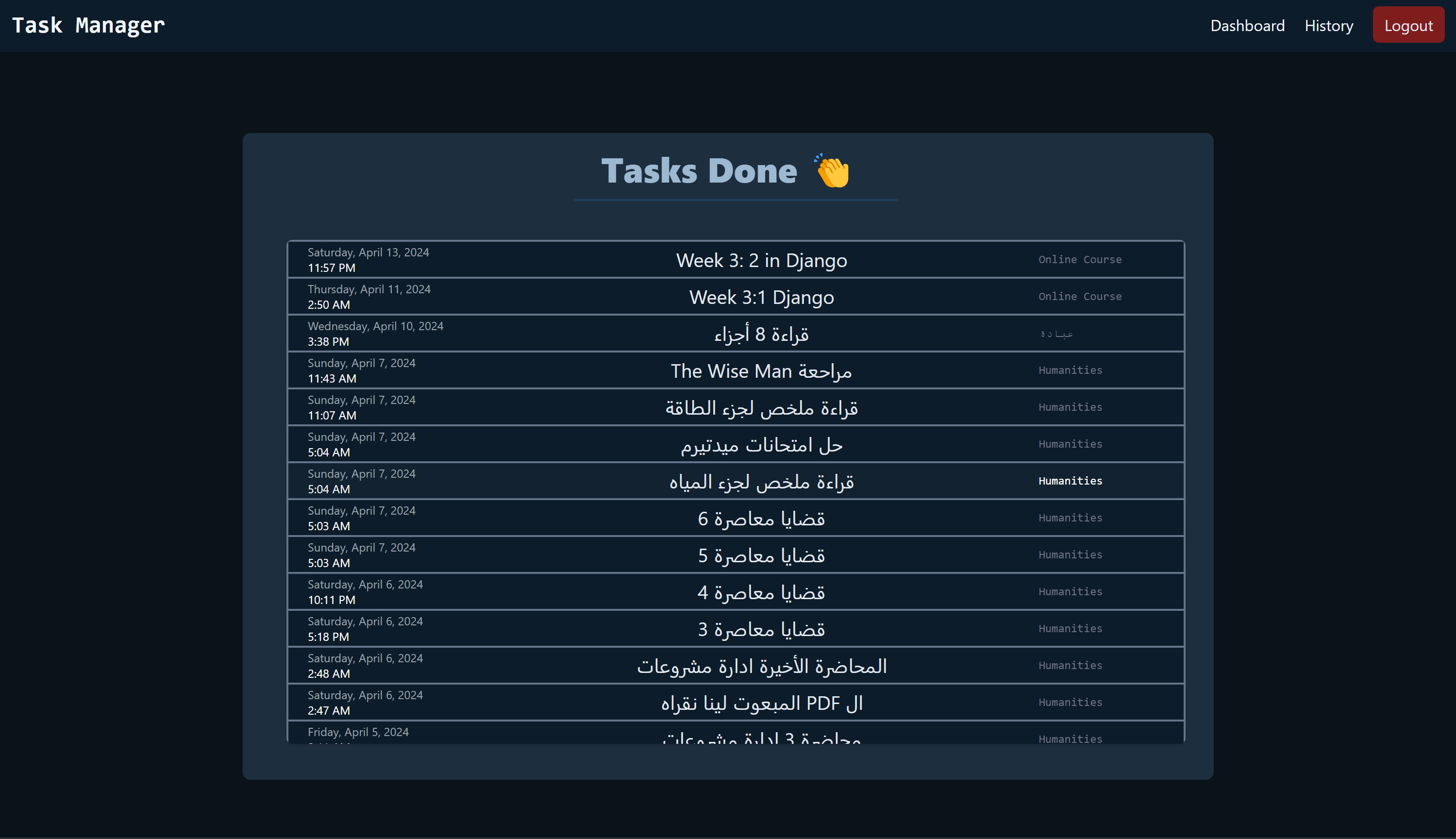 Note: This project was done for learning purposes without following any tutorial. The main purpose was to build a task manager app to help me manage my study and work tasks. What you see here is what I use > to manage my tasks. :)