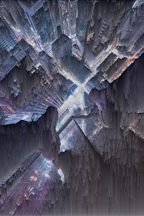 Vertical Pixel Sort - Similar to Bit Sort, pixels within the input image are rearranged, but only vertically. Pixels are grouped into clusters according to their brightness in order to create a vertically displaced effect. Pixels are subtly horizontally distorted. The horizontal direction of the pixel displacement is determined by the brightness of the pixels adjacent to the current pixel analyzed. This process is repeated for each vertical cluster column of pixels in the image.