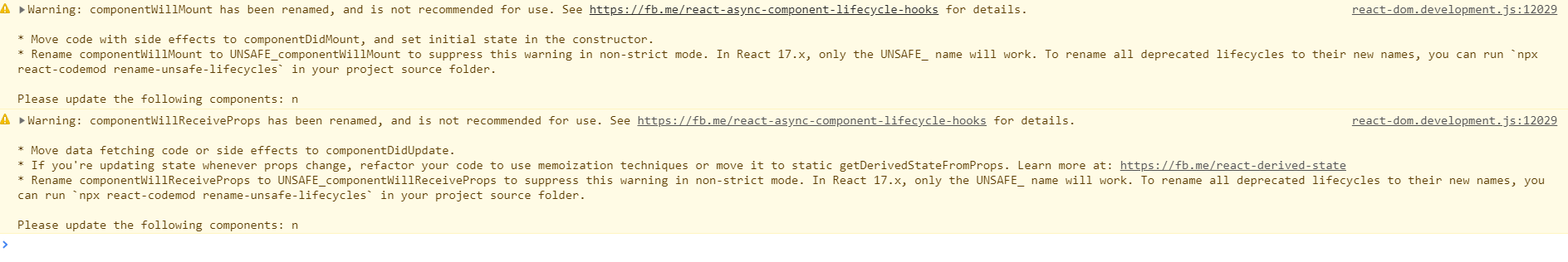 react-dom.development.js:12029 Warning: componentWillMount has been renamed, and is not recommended for use. See https://fb.me/react-async-component-lifecycle-hooks for details.
