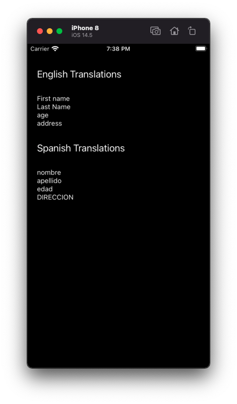 yarn add react-native-localized-textFirst we need to create the dictionary we are going to use to translate the strings on the app, this dictionary are JavaScript object, each key of the object represent one string on the app