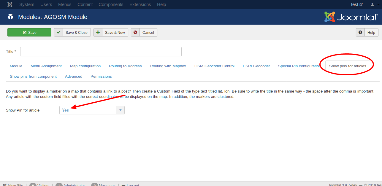 Attention, this extension is not compatible with plg_fields_agosmmapwithmarker. The two extensions can be installed together. They may not be displayed on one page at the same time.