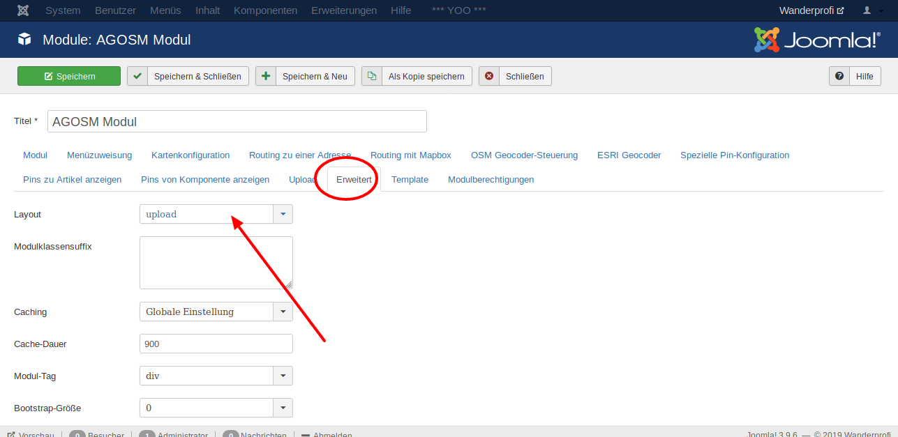 Extension | Modulesand click the toolbar buttonnew. In the appearing list should be the entryAGOSM Module.