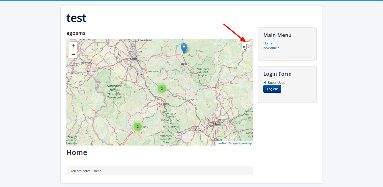 Fill the Custom Field agosmsaddressmarker while editing an article. You do not need the full address. You can enter only the name of the city if you want a marker in the center of a city.