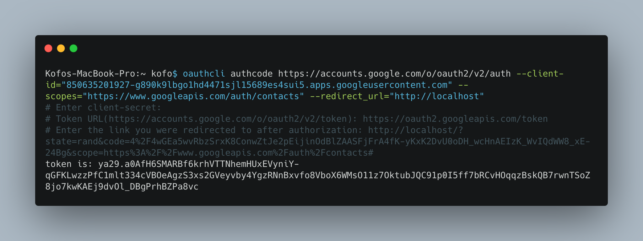 usage: oauthcli --client-id=CLIENT-ID --scopes=SCOPES [<flags>] <command> [<args> ...]