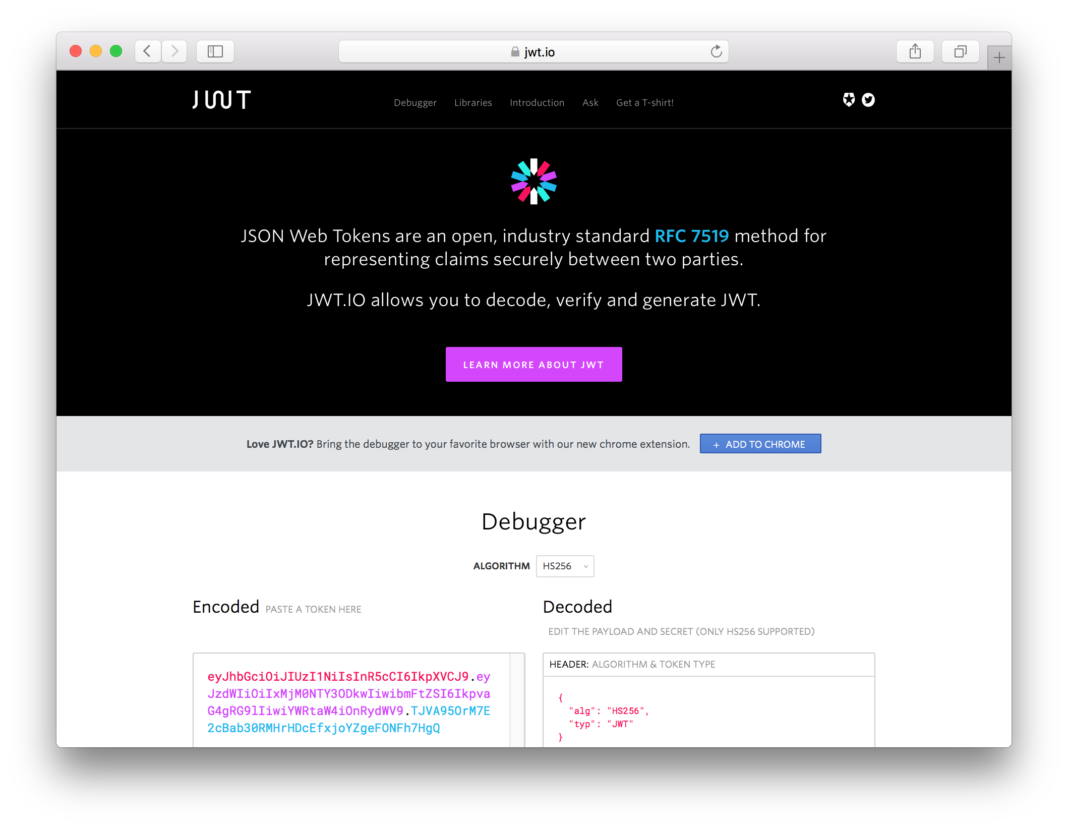 If you want to quickly add secure (JSON Web) token-based authentication to your projects, feel free to check Auth0's documentation and free plan at developer.auth0.com |