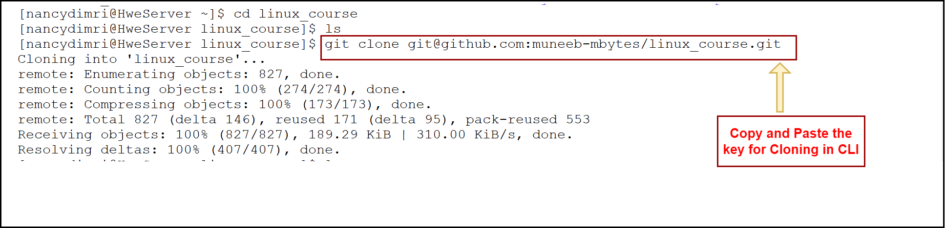 After this , go to the CLI system . Use "git clone <COPY_THE_LINK>" .Now you can see cloning process is done . Below image show it clearly.