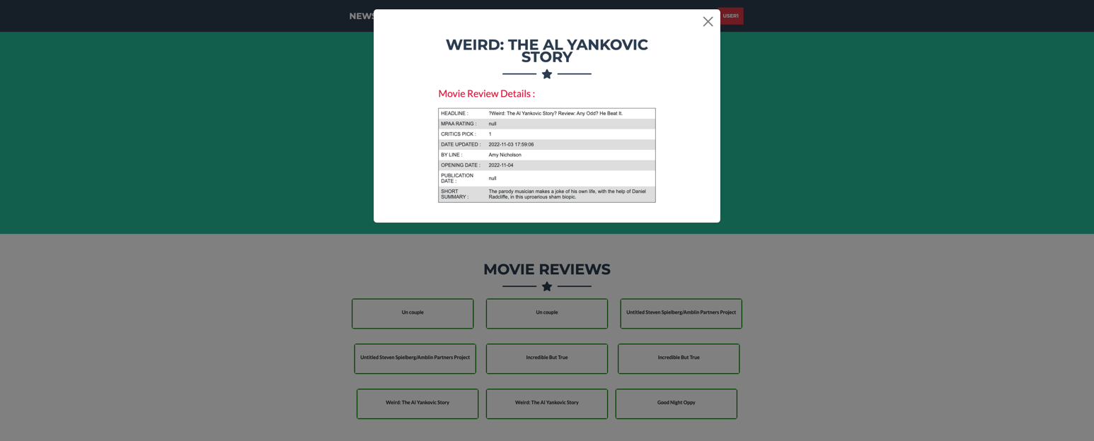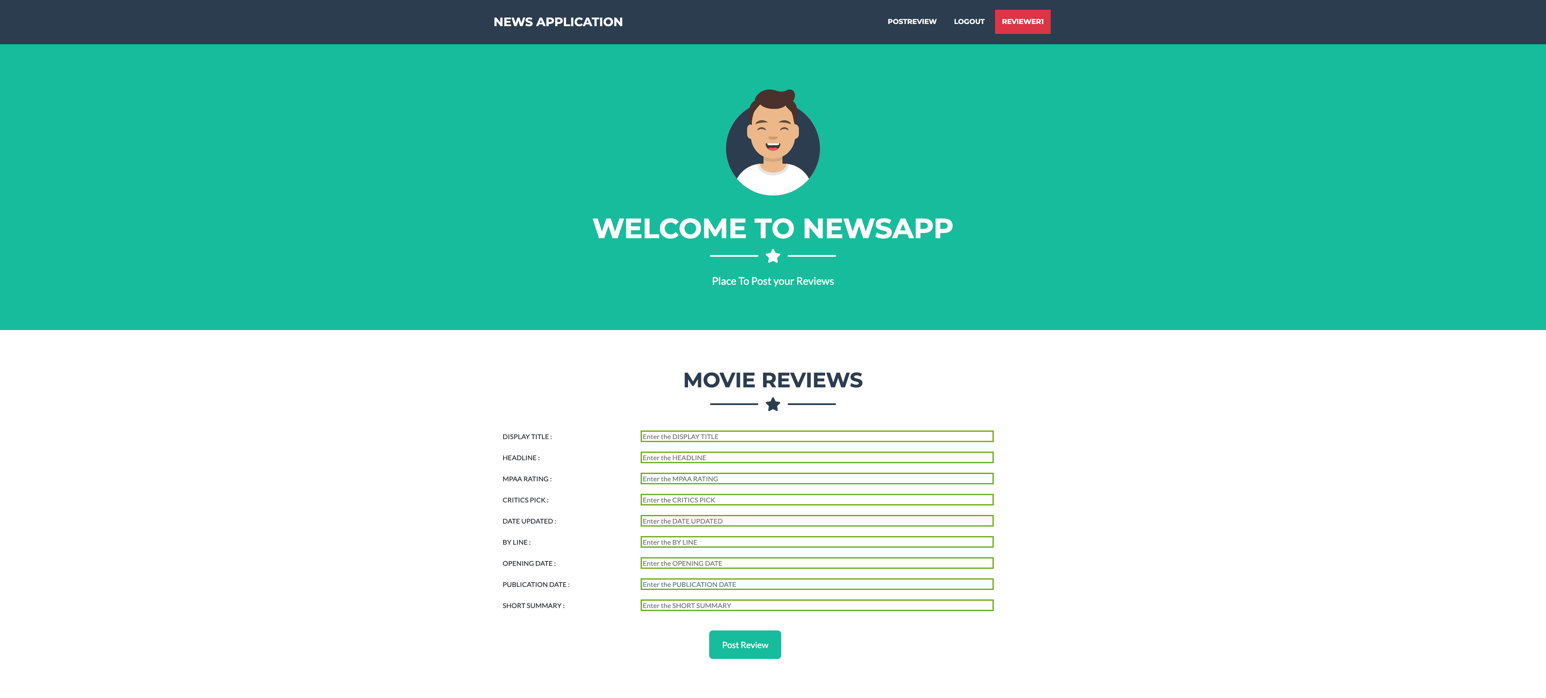 THE PROJECT IS BASICALLY DESIGNED USING JSP AND SERVLETS. INTIALLY THE DATA IS PULLED FROM THE API (https://developer.nytimes.com/) AND IS STORED IN A LOCAL MYSQL DATABASE. THE OBSERVER DESIGN PATTERN IS IMPLEMENTED WITH THE HELP OF REVIEWERS AND USER VIEW. THE REVIEWER CAN POST THE REVIEW FROM THEIR ACCOUNT AND THE CORRESPONGING USER WHO HAVE SUBSCRIBED WILL BE ABLE TO SEE THEM.