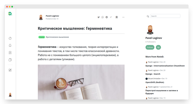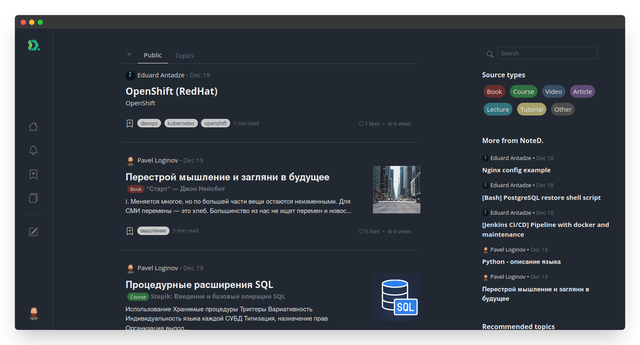 This website helps to create personal notes, share them public, search for notes on a specific information source or interesting topics and save them, follow users and be followed by others. The project was created for my educational purposes, but has a practical application.