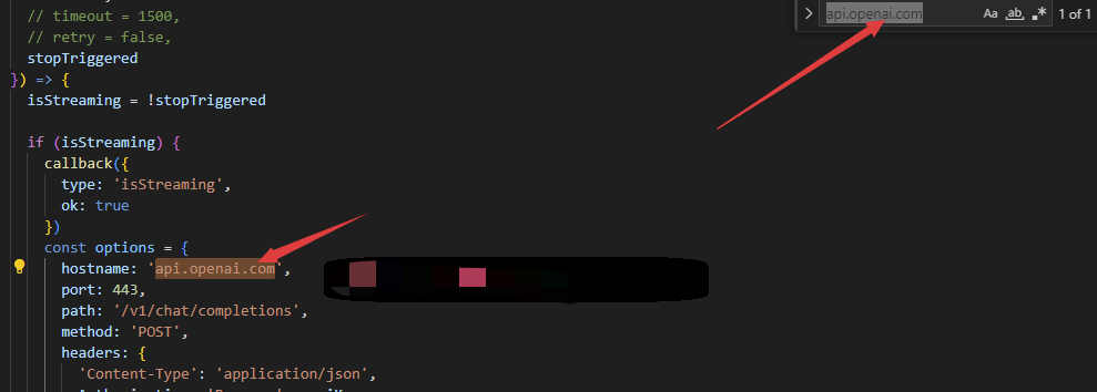 - 打开后进入打开文件./src/clients/openai_client.js,搜索文件中的api.openai.com,并替换为
